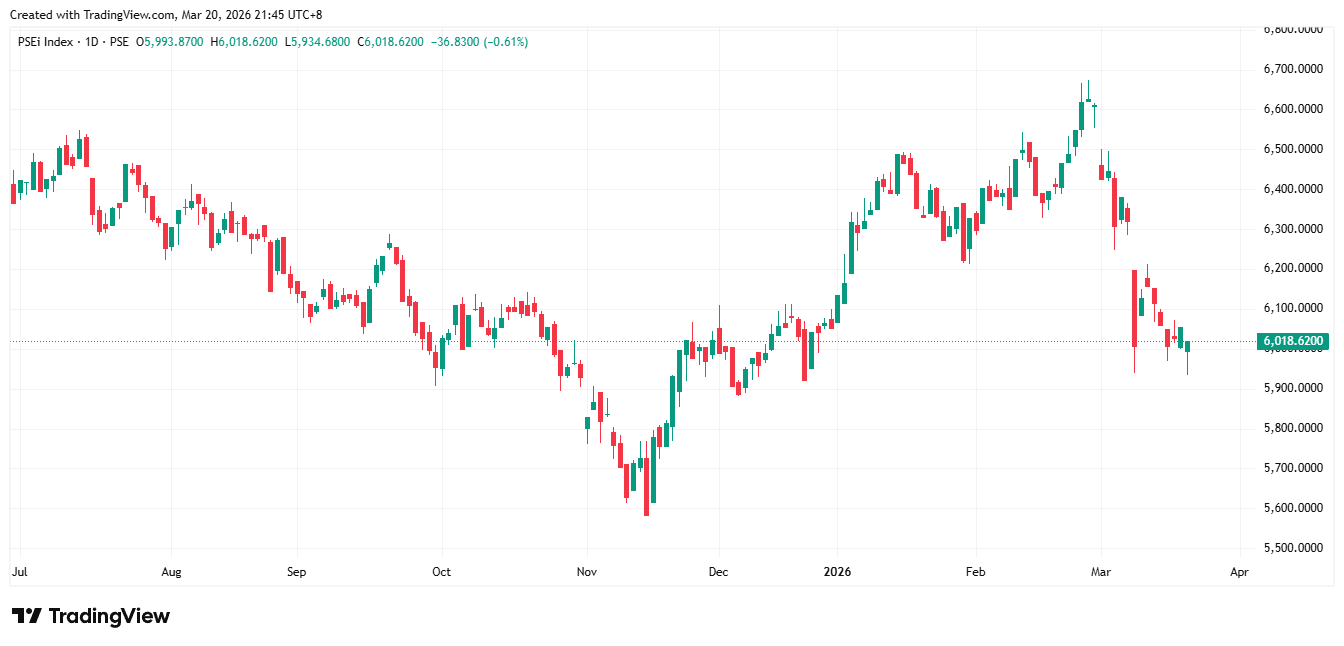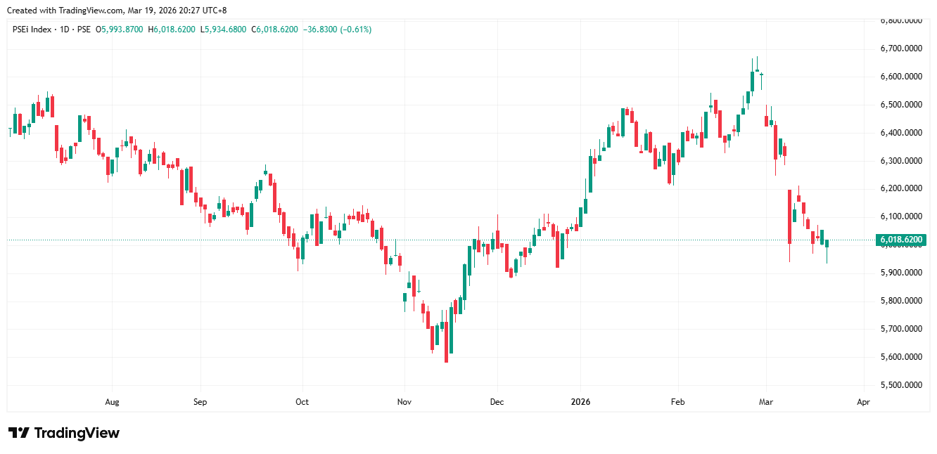 | PSEi | 6,018.62 | 36.83 | 0.61▼ |