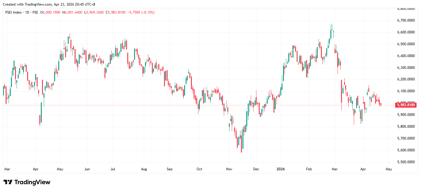 | PSEi | 5,989.56 | 29.14 | 0.48▼ |